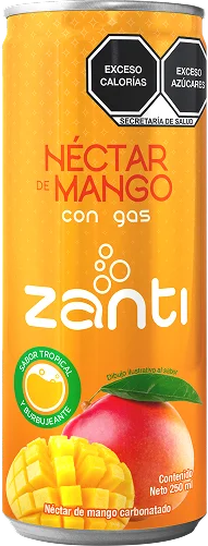 - Vierte el jugo de durazno y luego añade la lata de Zanti de Mango. Mezcla suavemente.